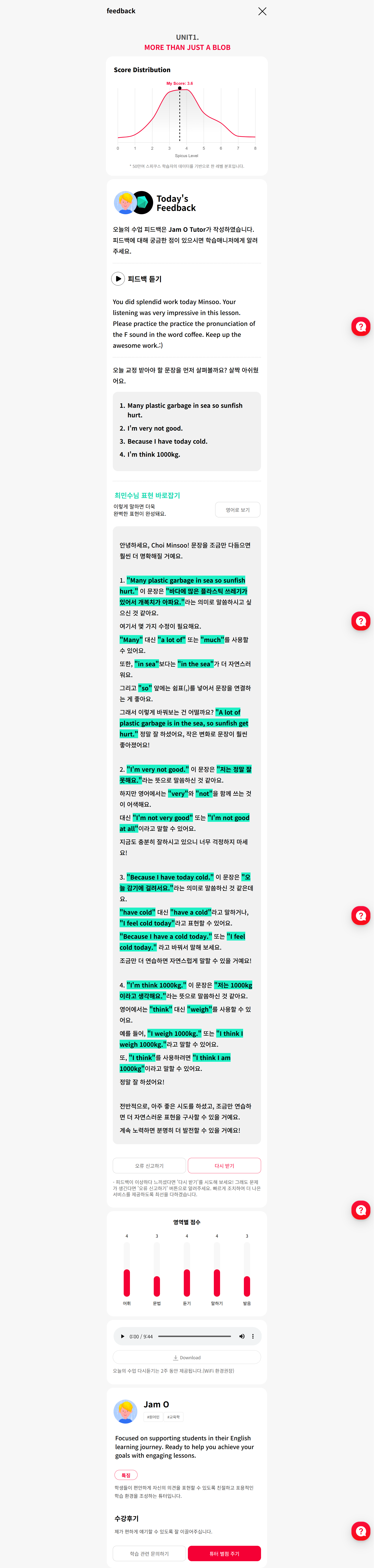 - 수업이 끝나면 내가 말한 표현과 발음을 상세히 피드백해줍니다.